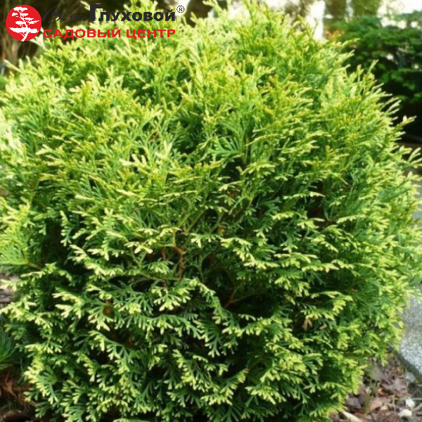 Туя западная Вотерфилд - карликовый медленно растущий шаровидный, хвойный кустарник. К 10-ти годам высота до 60 см, ширина до 60 см. Веточки короткие, густые, плоские, повёрнуты вертикально. Хвоя оливково-зелёная, весной и летом с жёлтыми кончиками на концах побегов, зимой – с бронзовым оттенком. Почва дренированная. Морозостойка, светолюбива, ветроустойчива.