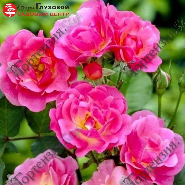 Роза Ругоза (Rosa rugosa) канадская William Baffin - сильнорослая, надежная и зимостойкая роза высотой до 200 см. Полумахровые цветки ярко-розового цвета, с золотыми тычинками, белыми потеками у основания лепестков и более бледным реверсом (это особенно заметно, когда лепестки закручиваются к центру цветка). Они появляются в больших кистях по 10-30 шт, более или менее продолжительно в течение всего лета и осени. Куст в полном цвету производит впечатление великолепной видовой розы. Листва темная, блестящая, устойчивая к заболеваниям.