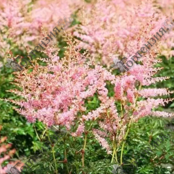Астильба 'Хенни Графланд' – многолетнее, травянистое растение, высотой до 40 см. Цветки бледно-розовые, мелкие собраны в пушистые, метельчатые соцветия, длиной до 12-15 см. Бутоны ярко-малинового цвета, что придает контраст растению. Листва резная, глянцевая,темно-зелёного оттенка. Цветение с июля по август. Предпочитает полутенистые места, но при хорошем увлажнении может расти и на солнце. Не выносит засуху. Неприхотлива. Зимостойка.