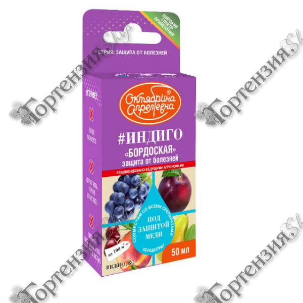 Индиго является контактным фунгицидом и обладает защитными свойствами. Активные составляющие фунгицида - ионы меди - проникают в клетки фитопатогенов, где, взаимодействуя с различными ферментами, подавляют их активность, нарушают процессы дыхания и вызывают неспецифическую денатурацию белков. Это приводит к прекращению роста спор и конидий фитопатогенных грибов и блокировке проникновения их в растение. Препарат характеризуется хорошей прилипаемостью и равномерно покрывает обрабатываемую поверхность. После обработки на растении образуется дождеустойчивый защитный слой, который эффективно подавляет прорастание спор грибов, предотвращая дальнейшее развитие и распространение возбудителей болезней и обеспечивая надежную защиту даже при неблагоприятных погодных условиях.