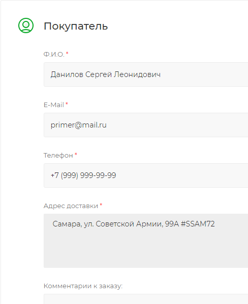 Заполняете данные в разделе "Покупатель".