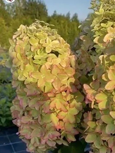В начале цветения лепестки чистого лаймового цвета, далее постепенно образуется на стерильных цветках розовая кайма. В августе лаймовый цвет начинает преображаться в розовые оттенки, переходя в насыщенные яркие тона. С появлением контрастных ночных и дневных температур, лепестки приобретают малиново-бордовый оттенок с характерным металлическим оттенком.